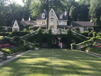 Kates purchased 312 acres in 1902 from Walter Cox, the sole heir of Colonel Hewson Cox. Kates added a library wing based on Haddon Hall, Bakewell, England. Plans of construction (archived at the Philadelphia Atheneum) by Medry, a prominent Philadelphia architect of this era. He created a driveway that entered on Swedesford road which directly accessed the main house He added clay tennis courts, a cistern located 300 feet north of carriage house, a spring house south of swimming pool, a chauffeur cottage, a steam driven dairy barn, a smoke house that provided gravity fed hot water from the cistern to the main house and a heated constant flow swimming pool He also modified the origin Andrew Jackson Downing plans removing the porches for rap around pergola on face of main house (see pictures). Known as Kates Mansion and Swedesford Farm, Clarence was the head of many farm associations, a well-documented leader in research on steam power in agricultural applications, and a lecturer throughout the East on agricultural affairs.